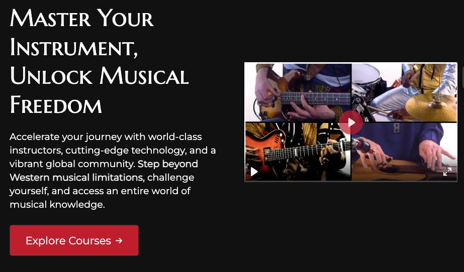 As a hobby level guitar player, I am only as persistent practicing as I am entertained by the material I'm learning. For me, this site unlocked a new world (ha) of music to play. World Music Method connects you to a global network of musicians that can teach you to play in their style while telling stories and talking about their culture.